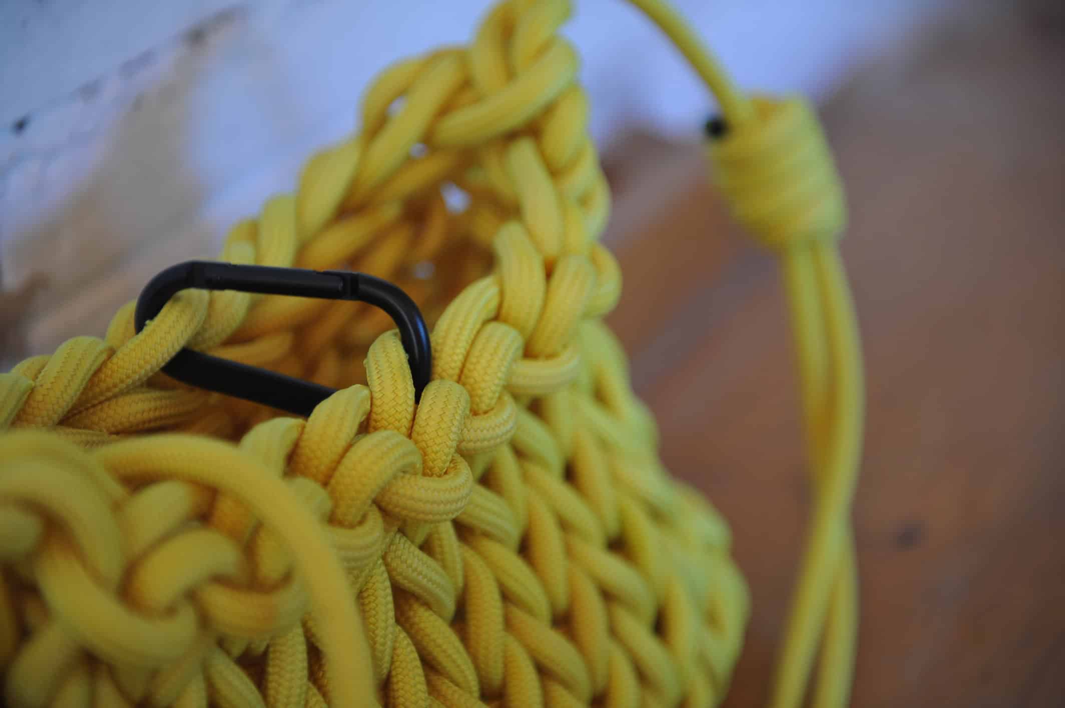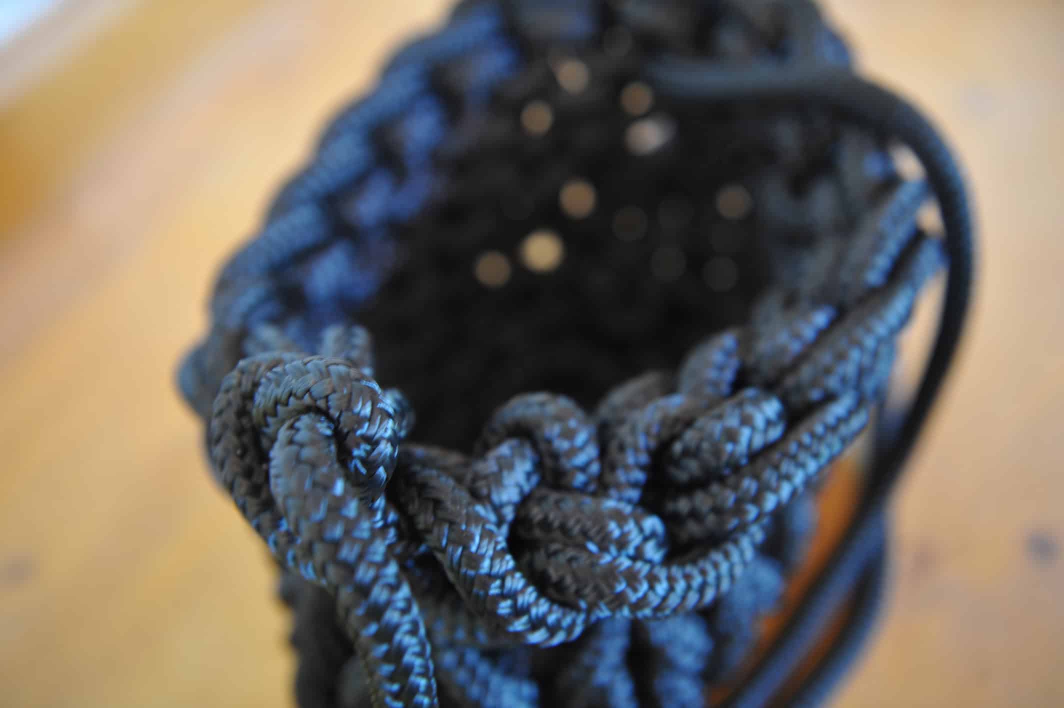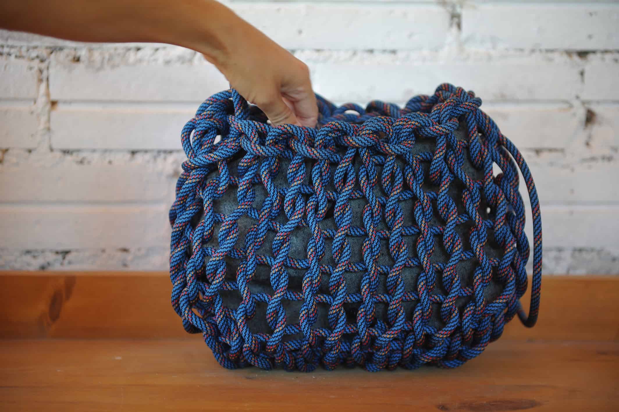 Cistell de corda d’escalada reaprofitada. Nansa regulable.